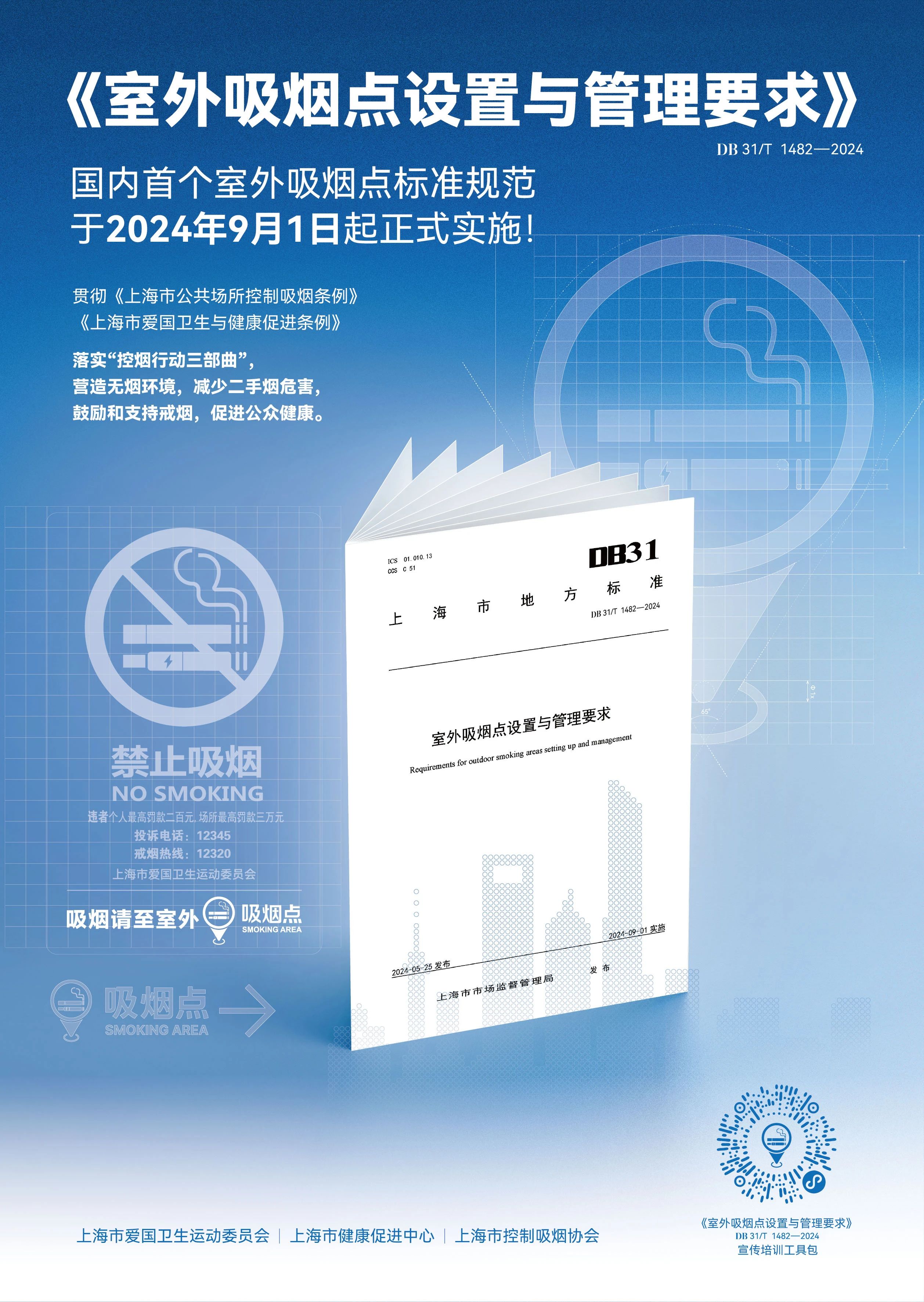 上海市地方标准《室外吸烟点设置与管理要求》今年5月25日由上海市市场监督管理局发布,将于今年9月1日起正式实施。这是国内首个室外吸烟点的标准规范。
