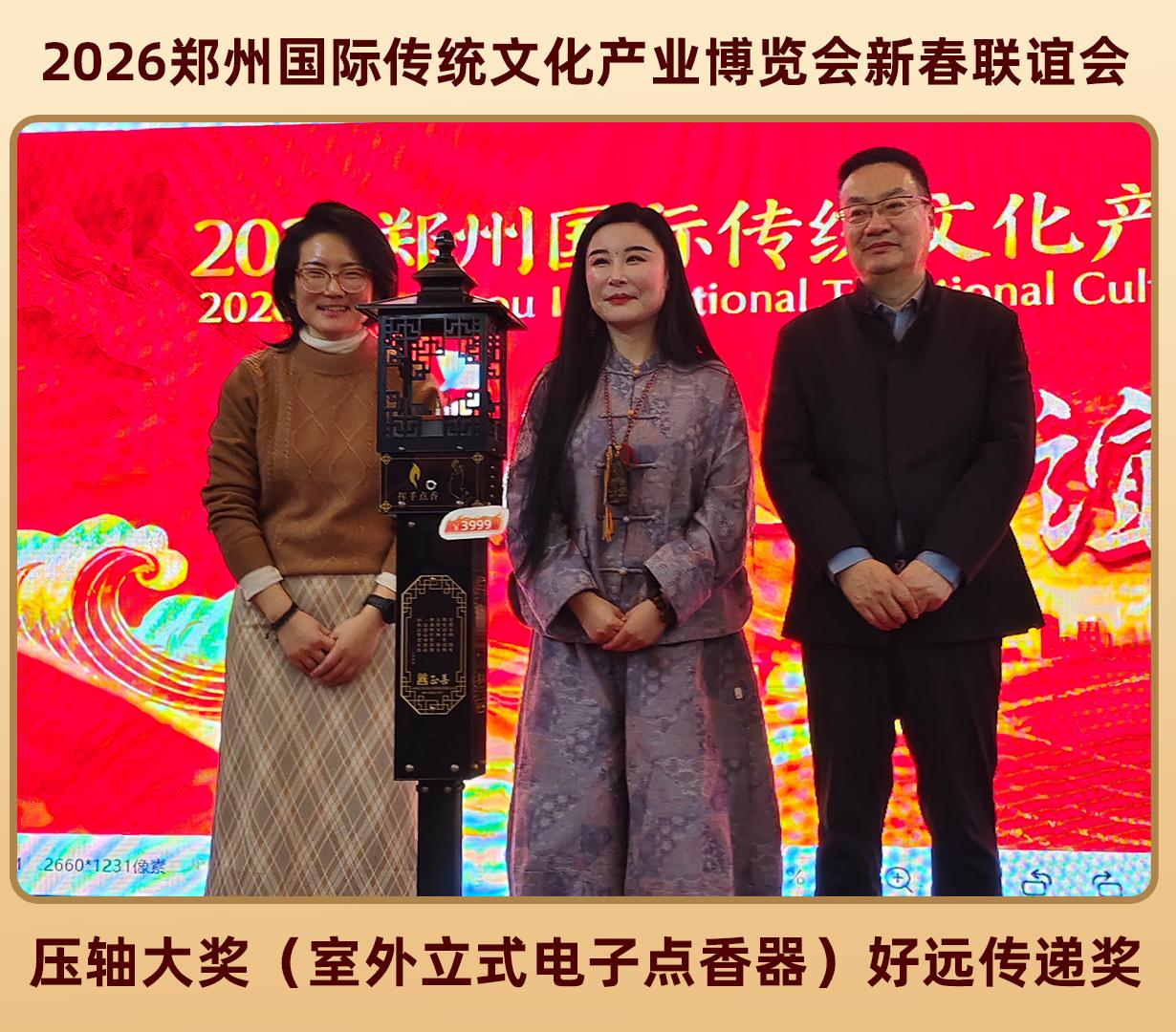 • 2026郑州国际传统文化产业博览会新春联谊会 立式电子点香器荣膺压轴大奖