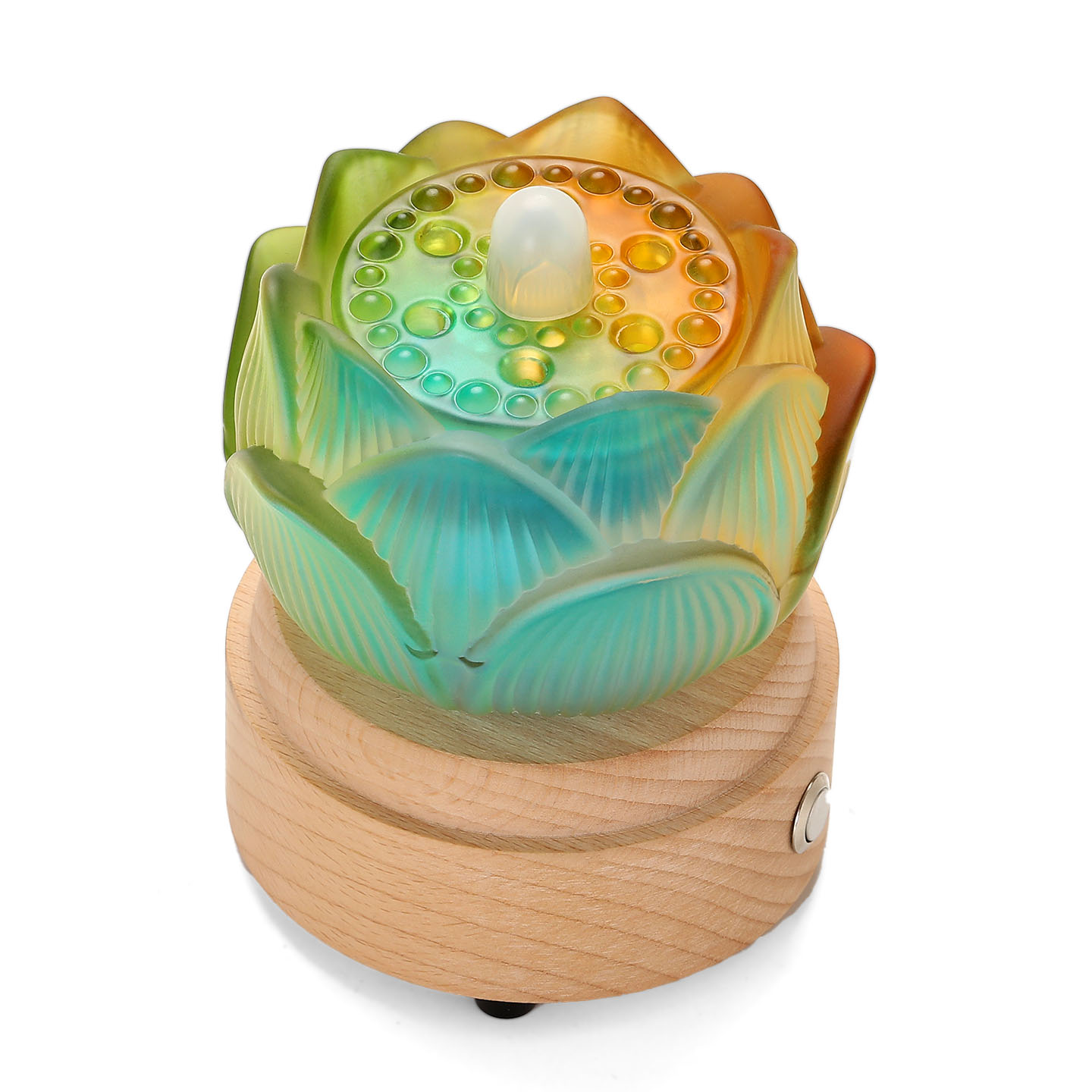 琉璃质地通透莹润;安全点香,不用油不用气;开盖即可点香;独立灯光开关,可关闭可长明;内置5首精心音乐,配有遥控器,可切换曲目、调节音量;¥ 0.00立即购买
